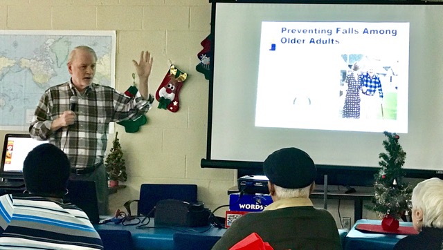 Going through the fall prevention presentation so seniors can avoid falling down.