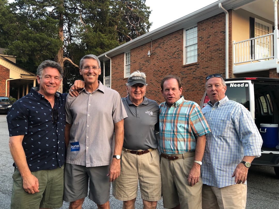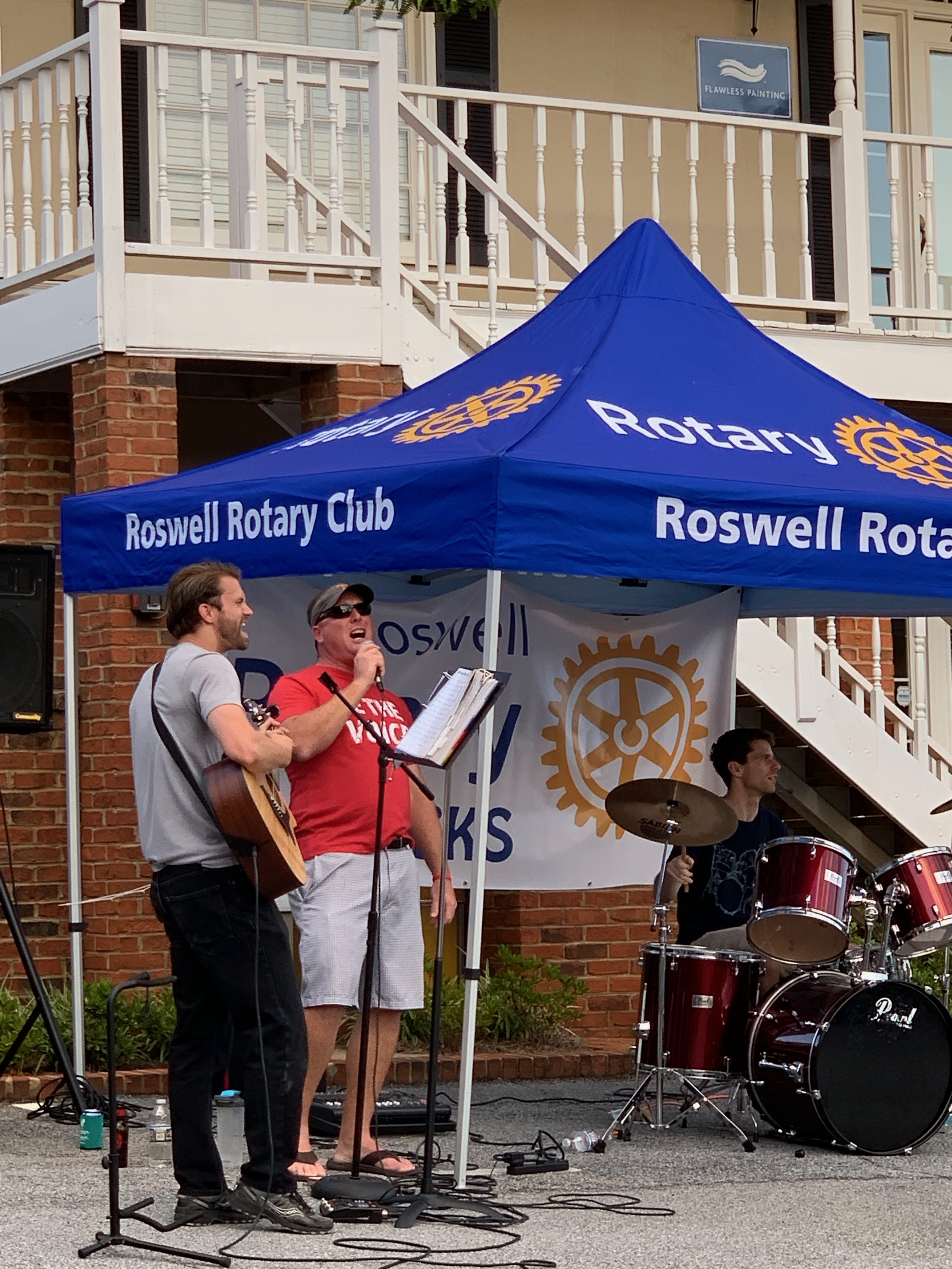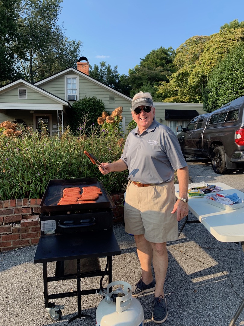 We pitch our Roswell Rotary tents, serve some cool beverages, grill burgers and hot dogs, and have lots of literature and invite our committees to join with us and promote club service projects.