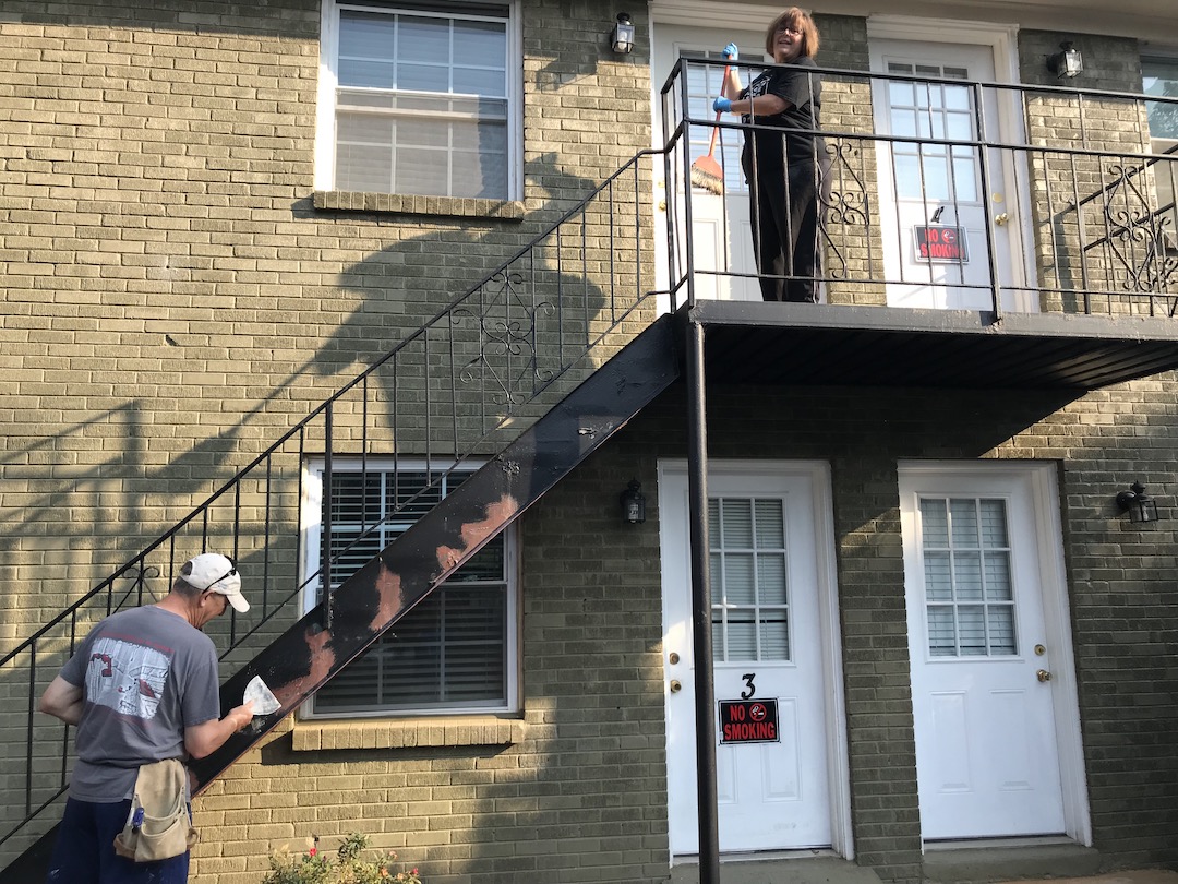 Roswell Rotary adopted the homeless men, women and their children who served our country. Volunteers helped paint staircases on the campus and enjoyed lunch with several of the men benefiting from their care.