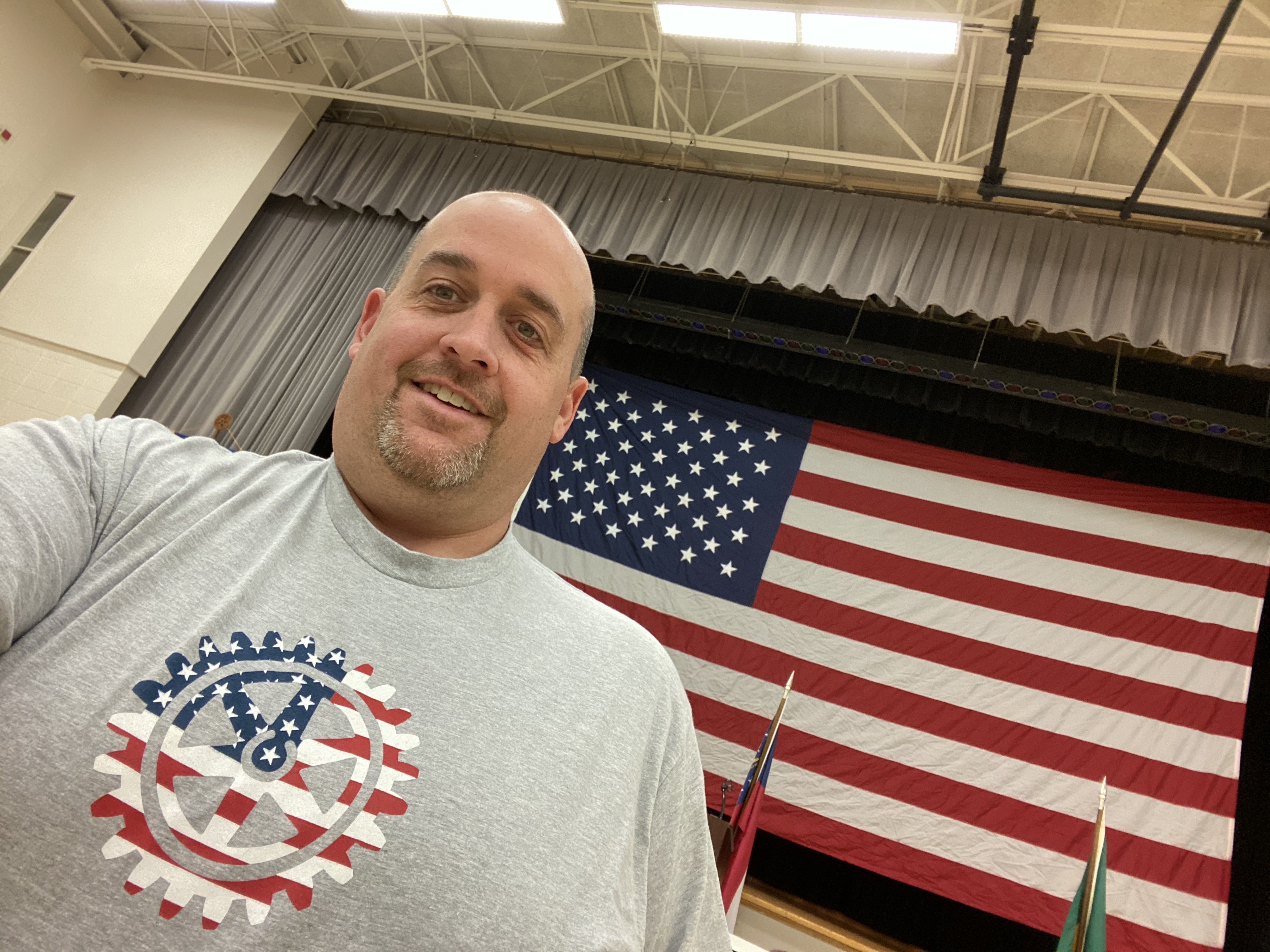 We ended the day at the local American Legion for a reception. We gave each veteran a token of our appreciation which included an American Flag, a specially designed Rotary/American Flag t-shirt and a glass with a thank you message from Roswell Rotary Club.