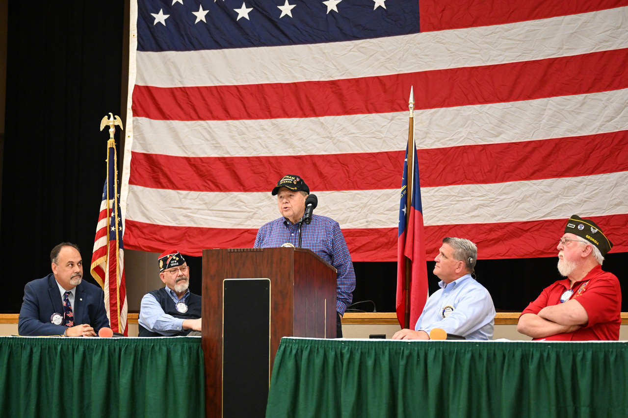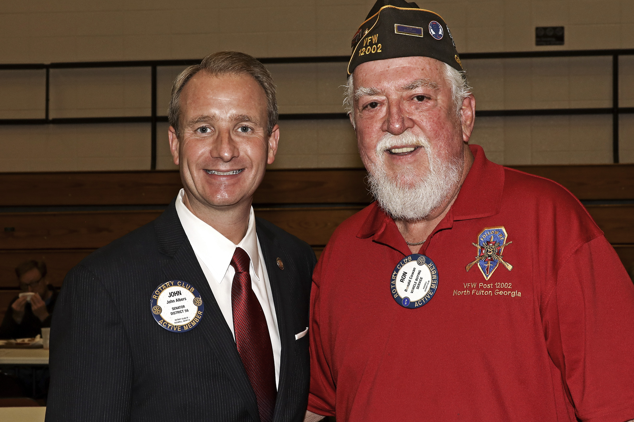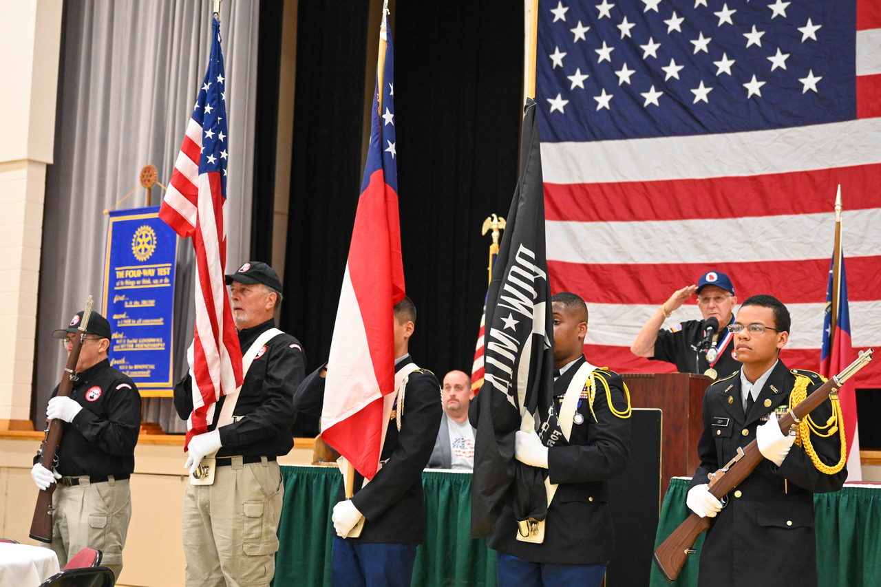 We started the day off with a joint color guard combining veterans with future soldiers from the local JROTC. Senator Albers paid special tribute to our veterans on behalf of the state of Georgia and then veteran members of our club shared stories from their time in the service.
