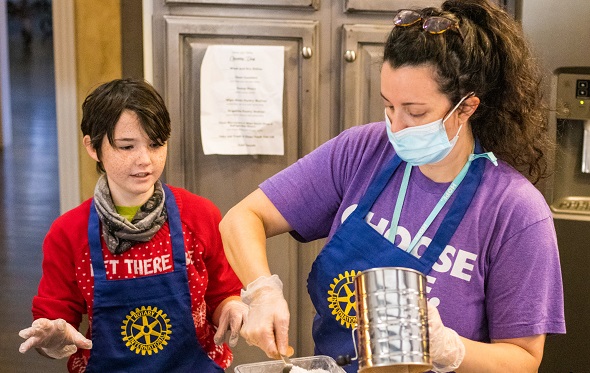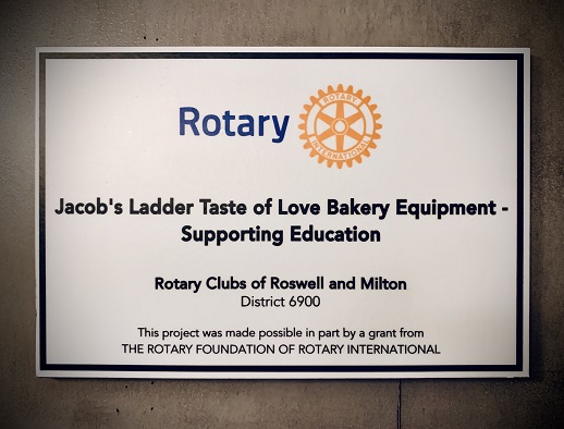 The oven was sourced via Roswell Rotarian Harvey Smith. Roswell Rotarian Debbie Cwalina made the Rotary International aprons. In December, the students baked cookies for both Roswell Rotary and the Rotary Club of Milton for the weekly lunch meeting as a gesture of thanks.