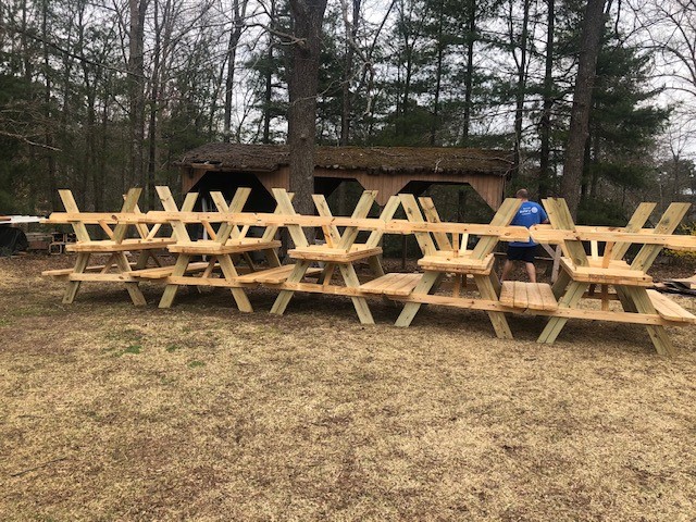 Painted Picnic Tables - 10 custom painted tables including the Rotary Logo and our parrot will be donated to local charities.