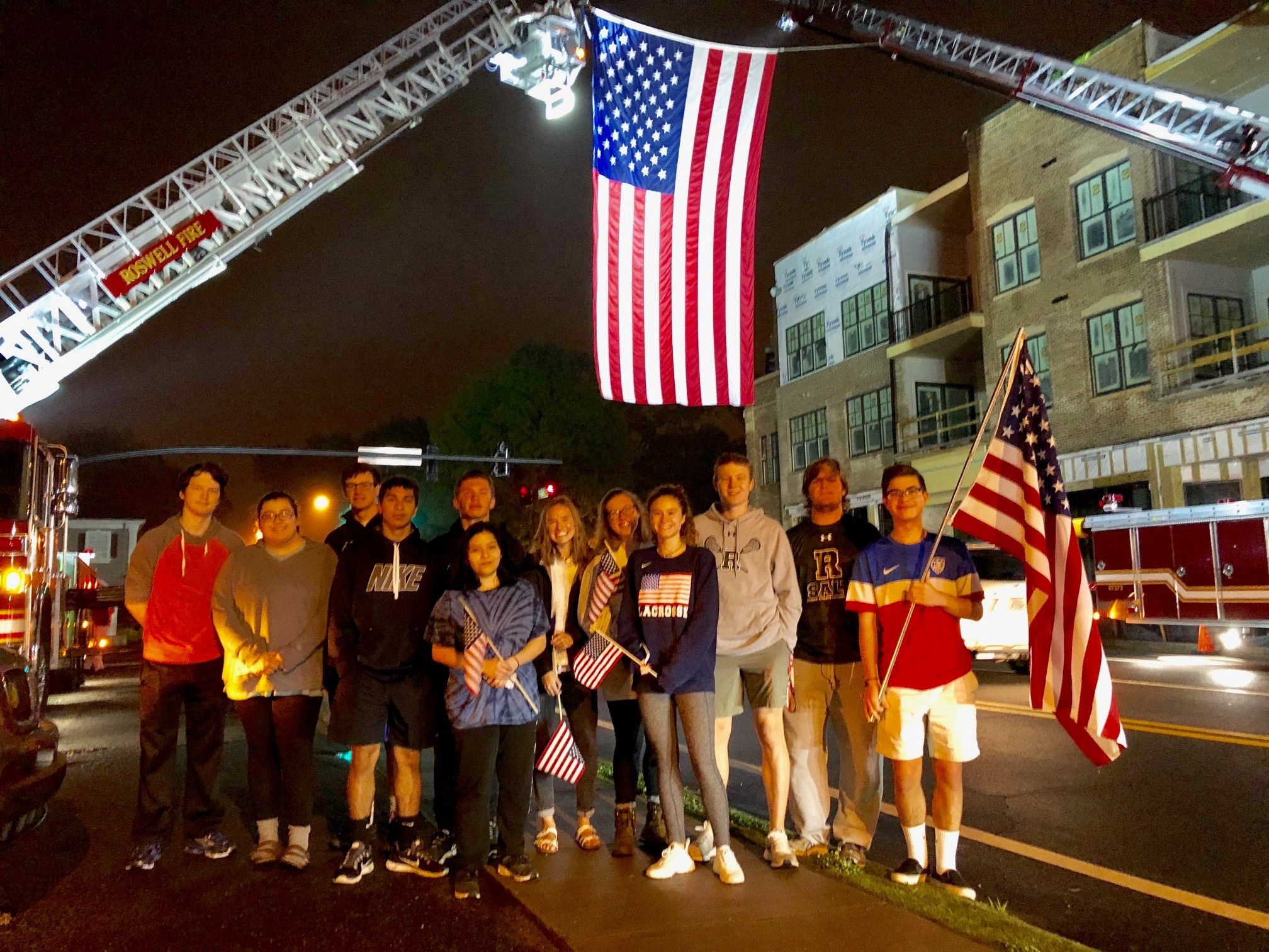 Partners: Roswell Police and the Patriot Motorcycle Guard will lead two buses beneath fire truck crossed ladders, past cheering Rotarians and Rotoractors, clearing traffic all the way down Georgia 400.