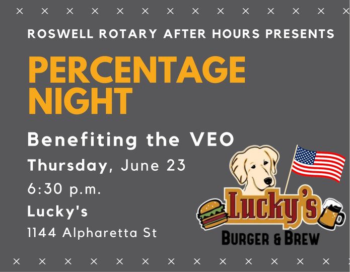 The Roswell Rotary After Hours Club (Roswell Rotary's satellite club) hosted a Thirsty Thursday social and fundraiser at Lucky's Burger & Brew to support their upcoming involvement with the VEO - the Veteran's Empowerment Organization in the Rotary year 2022-23.