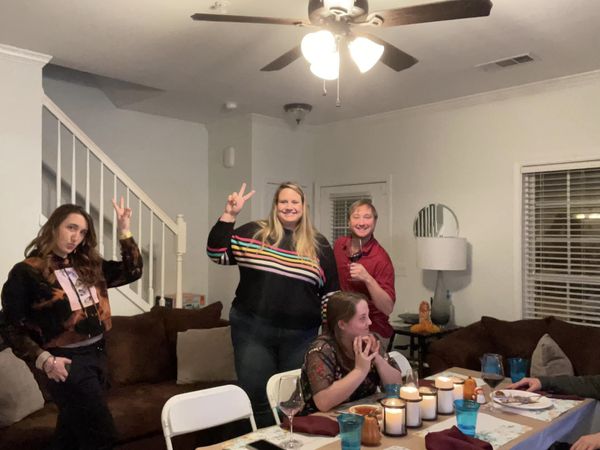 The Thursday before Thanksgiving, the Roswell Rotary After Hours Club gathered for a Friendsgiving potluck dinner at Chair Leigh Gould's home. This gathering was their "Thirsty Thursday" event for November 2023. A great time was had by all.