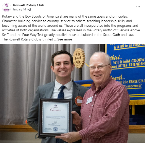 In addition to our support of the Cub Pack, Roswell Rotary sponsors and furnishes an apartment in the Drake Village Apartments. Roswell Rotarians John Greaves and Robert Fezza provide monthly financial mentoring to our apartment resident, a young mother seeking to get her life back in order and be able to raise her family on her own.