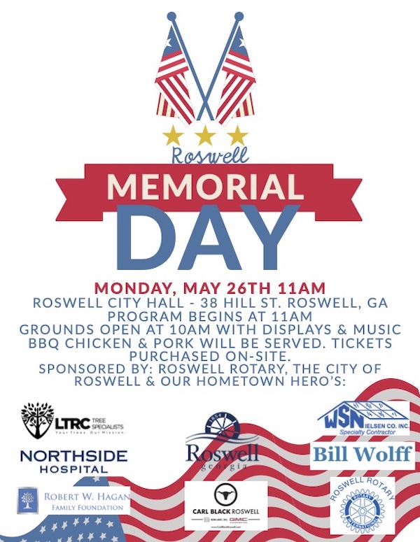 Lunch Meeting: In addition, the meeting immediately prior to Memorial Day allows Roswell Rotary to honor these men and women with a special speaker, the honor guard and bag pipes.