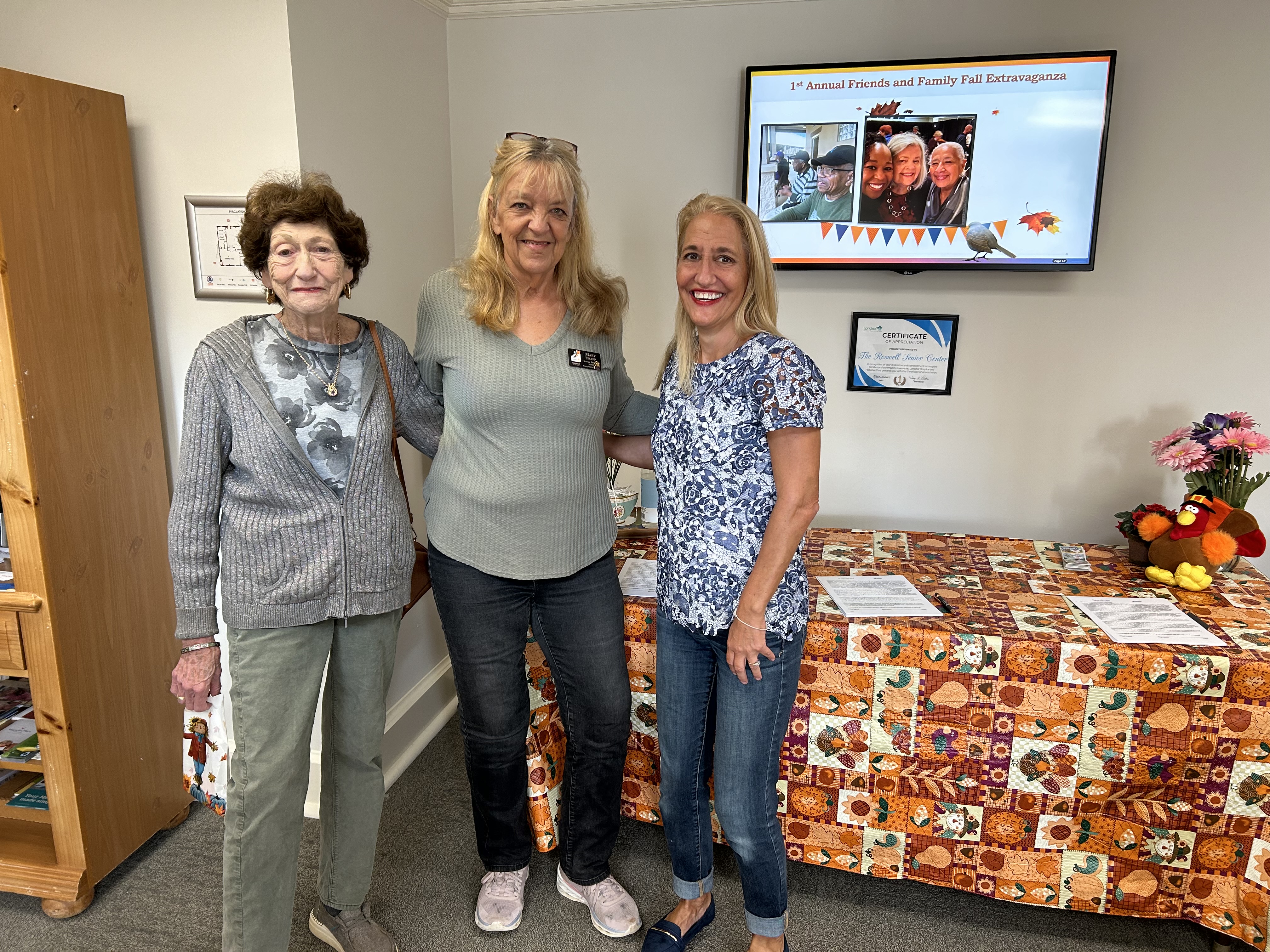 North Fulton Senior Services (Roswell location) invited Roswell Rotary to join in the fun of their 1st Annual Friends & Family Fall Extravaganza. Our responsibilities included welcoming guest, distributing gift bags, serving lunch, leading the dance party, among other things. The festivities included magic shows, Pilates classes, art exhibit of members artwork, vendors booths and dance off. Lunch was served. The event was intended to showcase the abundant opportunities provided through the center to the Senior community.