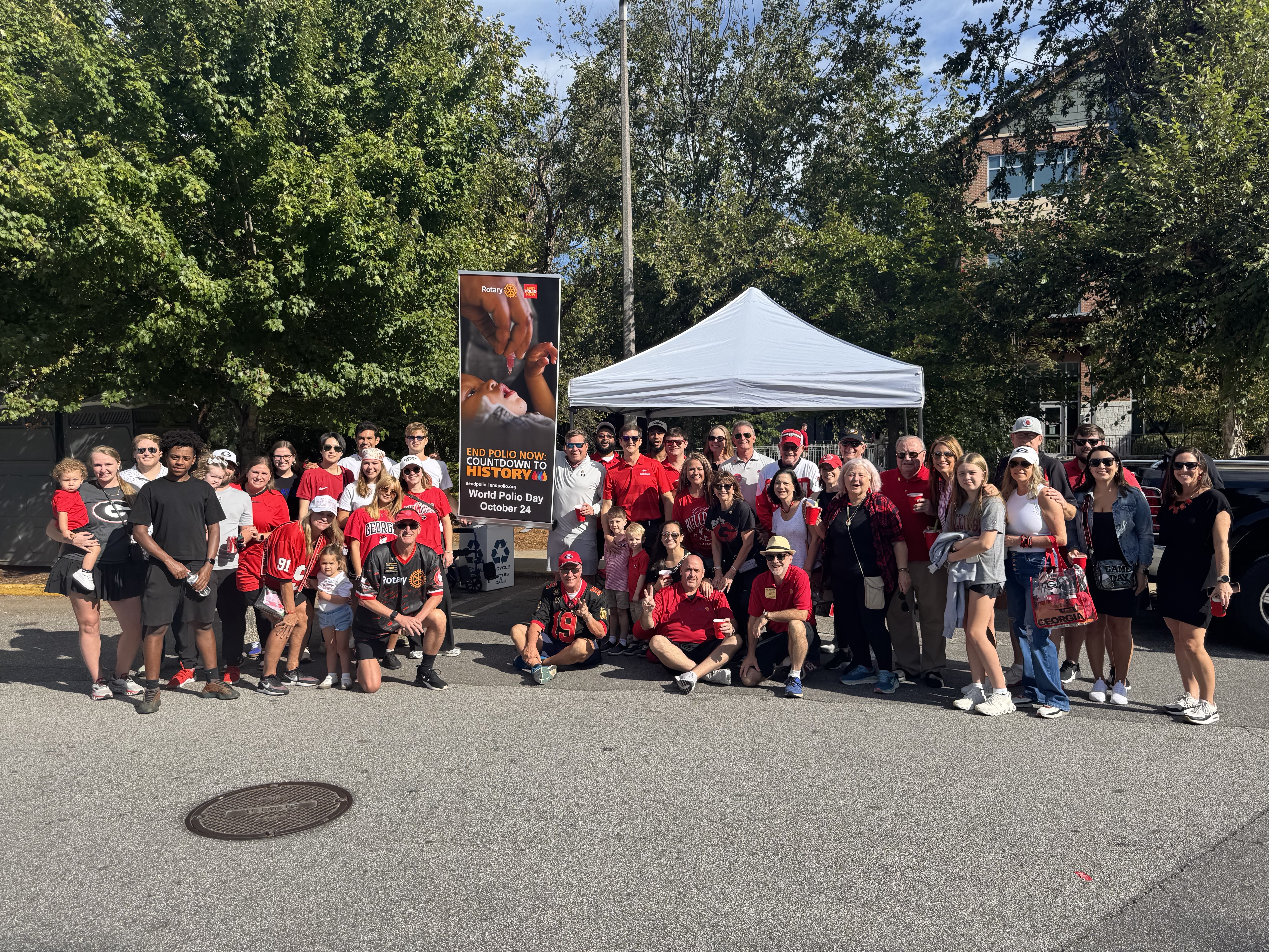 We tailgated with Rotarians traveled from Camilla to Savannah and Valdosta to Dalton, demonstrating strong statewide engagement. In addition, attendees included past and future District Governors, Georgia Rotary Student Program (GRSP) students and Youth Exchange students, and around 27 Roswell Rotarians highlighting Rotary’s multi-generational and international commitment to the fight against polio.