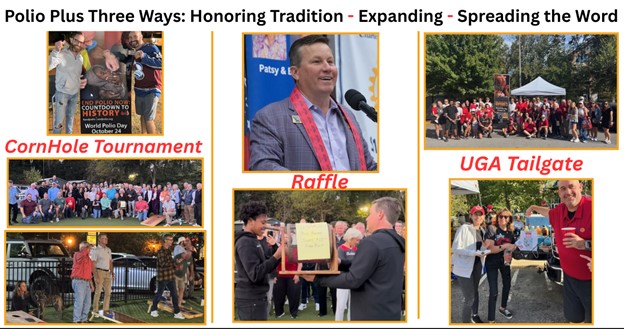 During the tailgate, Roswell Rotary launched a month-long PolioPlus "raffle fundraiser," using the event to both raise awareness and generate support for the eradication effort. Throughout October, the campaign continued at each weekly club meeting, where Rotary International polio awareness videos were shown and speakers reinforced the importance of Rotary’s global health mission. Raffle ticket sales continued throughout the month, keeping the focus on PolioPlus front and center.